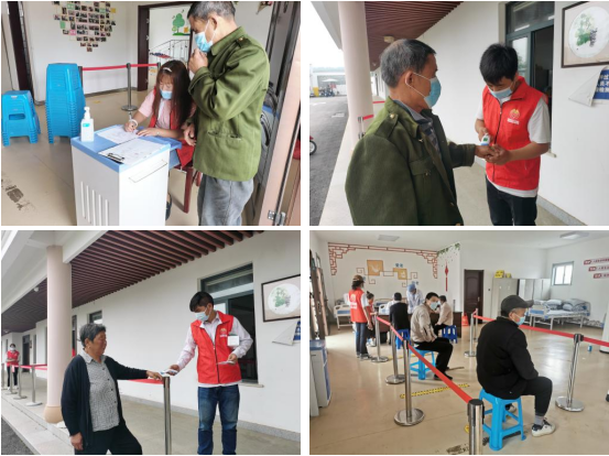 在健康體檢開始前,工作人員時刻緊繃疫情防控之弦,殘疾人之家組織社區(qū)人民簽到、有序排隊進行量體溫、分發(fā)口罩、并攙扶行動不便的老人到“一米線”距離坐下等待。