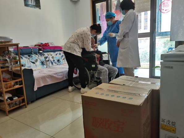 來到張叔叔家,張叔叔的妻子趙阿姨熱情接待了大家。張叔叔因為帕金森導(dǎo)致行動不便,經(jīng)過醫(yī)生的一番檢查,又向趙阿姨詢問了近期的身體情況,醫(yī)生表示可以接種,隨后為張叔叔接種了疫苗。為了確保張叔叔的身體沒有異樣,時間銀行志愿者在現(xiàn)場陪伴了張叔叔30分鐘。這次上門除了為張叔叔接種新冠疫苗,堯安新村社區(qū)殘協(xié)還為張叔叔送去了2箱尿不濕,方便張叔叔的生活。