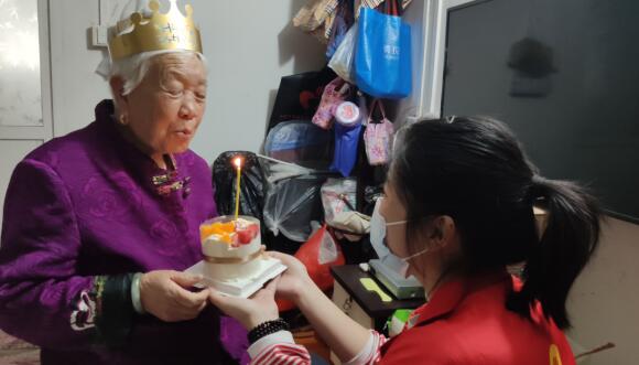 在做好疫情防護(hù)的前提下,志愿者們上門(mén)為老人們送上精心準(zhǔn)備的生日蛋糕,陪伴老人點(diǎn)燃蠟燭,許下生日的祝福,向長(zhǎng)者們傳遞關(guān)愛(ài)。長(zhǎng)者生日會(huì)不但豐富了老年人的精神文化生活,也弘揚(yáng)了中華民族的傳統(tǒng)美德,形成愛(ài)老敬老孝老的社會(huì)氛圍。