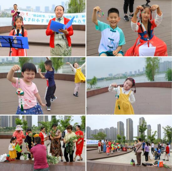 九龍湖畔,微風(fēng)徐徐,孩子們由家長帶領(lǐng),一早來到九龍湖公園中央舞臺。在志愿者們的引導(dǎo)下,簽到、測體溫、排隊做熱身并進(jìn)行自我介紹。活動以一首詩朗誦《屈原塔》拉開序幕,緬懷愛國詩人屈原。接下來志愿者帶領(lǐng)孩子們親自動手制作端午香囊和端午五彩繩手環(huán)。沉浸式感受濃濃的端午之意,感受中國的傳統(tǒng)節(jié)日和文化,體悟中華民族的智慧結(jié)晶。