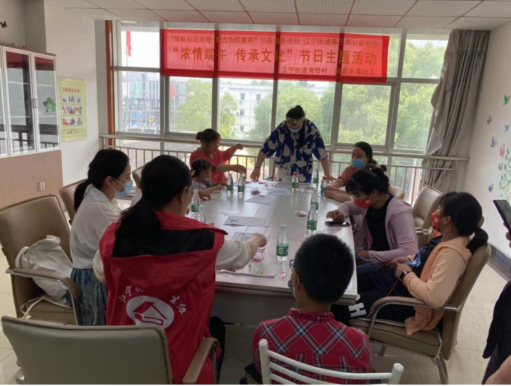 “傳說戰(zhàn)國時(shí)期的楚國詩人屈原在五月初五跳汨羅江自盡,后人就將這一天作為紀(jì)念屈原的節(jié)日,我們在這一天包粽子、插艾草、喝雄黃、佩香囊……”活動伊始,老師向村民講述端午節(jié)的來歷、傳說與習(xí)俗,增進(jìn)大家對這個(gè)節(jié)日的了解,促進(jìn)傳統(tǒng)文化的傳承。