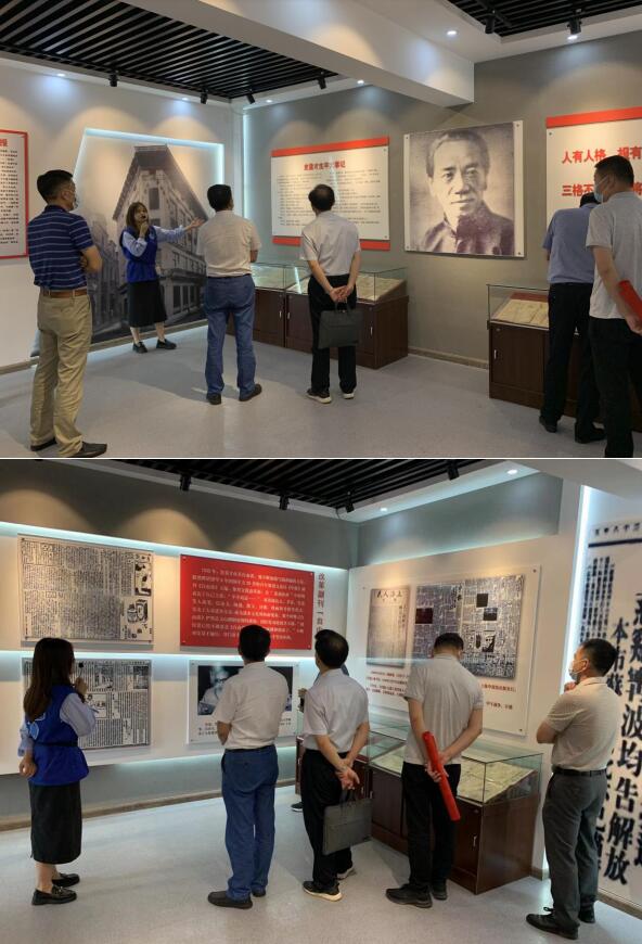 “史量才歷史文化展示館為4個(gè)展廳,以《申報(bào)》為主要載體,借助圖片、文獻(xiàn)、實(shí)物等方式,全面再現(xiàn)史量才報(bào)業(yè)救國的人生軌跡。”網(wǎng)格員李冬雪一邊帶領(lǐng)黨員們依次參觀,一邊為大家詳細(xì)講解。江蘇省漁業(yè)技術(shù)推廣中心委員會(huì)黨員們沉浸式感受到報(bào)業(yè)大王史量才勇于揭露黑暗、抨擊時(shí)弊的強(qiáng)烈民族情感和愛國精神,以及為捍衛(wèi)言論自由所表現(xiàn)出的大義凜然,英勇無畏。最后,大家深沉回望抗日戰(zhàn)爭(zhēng)時(shí)期艱苦卓絕、赴湯蹈火的戰(zhàn)斗歲月,深切感悟先輩們忠貞報(bào)國的家國情懷,深情緬懷英烈不畏艱險(xiǎn)、不怕犧牲的崇高精神。
