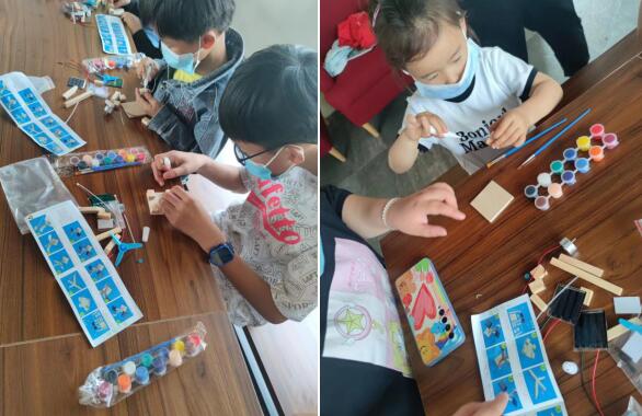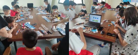 動(dòng)手制作環(huán)節(jié),小朋友們?cè)诶蠋煹闹笇?dǎo)下,一步一步拼接組裝太陽能風(fēng)扇。由于小白膠粘性比較低制作的時(shí)候很難將東西粘起來,小朋友們機(jī)智地改用了502膠水,最終一個(gè)個(gè)色彩繽紛的太陽能風(fēng)扇就制作完成了。