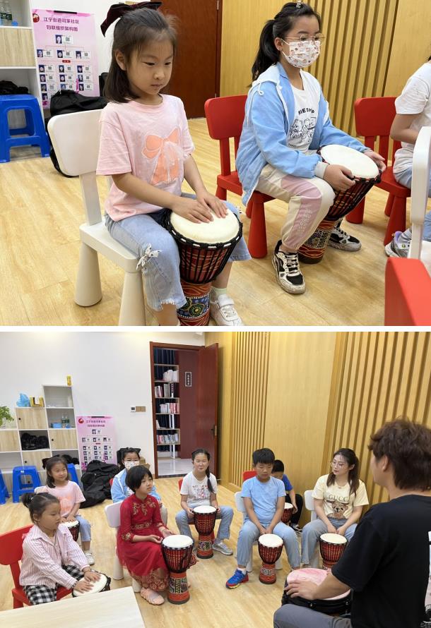 金貝鼓開課啦!志愿者張老師帶領(lǐng)孩子們了解了傳統(tǒng)樂器金貝鼓的起源、結(jié)構(gòu)構(gòu)造、基本音、坐姿、拍打手法等,孩子們表現(xiàn)出濃厚的學習興趣。在張老師的教授下,孩子們從一竅不通到能根據(jù)老師指令擊打出鼓音,超強的學習和領(lǐng)悟能力得到了老師和現(xiàn)場家長的一致表揚,為今后學習金貝鼓打下了結(jié)實的基礎(chǔ)。