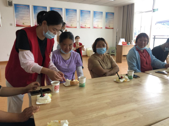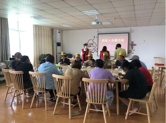 社區(qū)志愿者提前梳理出5位當(dāng)月過生日的殘疾人名單,準(zhǔn)備好生日蛋糕和禮品,并邀請了15位到場祝賀的殘疾人,共同為5位壽星集體慶生。