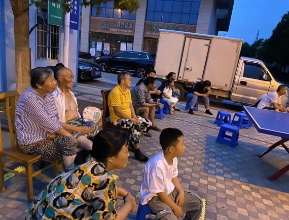 為培養(yǎng)愛國情感,加強精神文明建設,6月9日晚,南京市江寧區(qū)江寧街道清修村組織村民開展紅色經(jīng)典觀影活動,在電影中感受深厚的家國情懷。