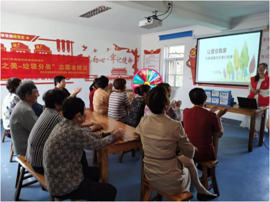 活動(dòng)中,志愿者向村民們發(fā)放了生活垃圾分類投放指南,并結(jié)合宣傳冊(cè)上的內(nèi)容,講述垃圾分類的幾種類別和具體方法,教導(dǎo)居民正確的分類方式,也讓大家進(jìn)一步了解垃圾分類的重要意義。