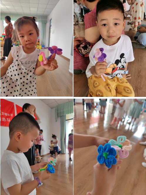 接著是DIY手工環(huán)節(jié),大家圍坐在一起,老師將手工花的制作材料分發(fā)給每個孩子,邊講解邊操作,家長和孩子們共同參與,經(jīng)過一番嘗試后,各式各樣的手工花朵呈現(xiàn)在眼前,孩子們在收獲了勞動成果的同時,學(xué)習(xí)和動手能力也得到了鍛煉。