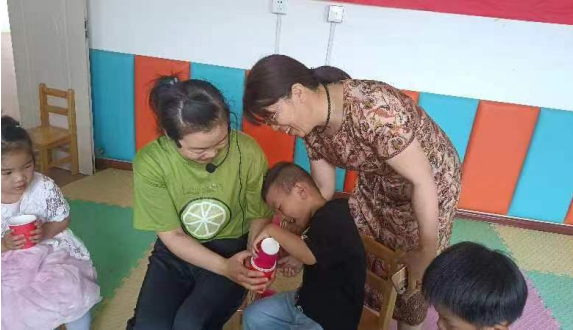 接著,家長和孩子圍坐在一起,老師給現(xiàn)場每個孩子和家長分發(fā)一次性紙杯,將自己紙杯中的所盛之物依次倒進下一個人的杯中,以接力小游戲來培養(yǎng)孩子的團隊合作意識,增進家長和孩子之間的交流。孩子們被游戲環(huán)節(jié)深深吸引,認真地傾倒杯中之物,生怕漏了出來,整個環(huán)節(jié)緊張又歡樂。