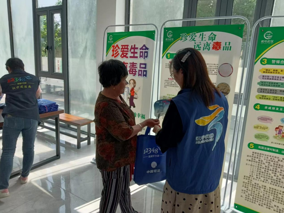 社區(qū)精心準備了知識展板,以及環(huán)保袋、扇子等宣傳物料,為前來參與活動的村民發(fā)放。村民們矗立在展板前認真觀看,網(wǎng)格員則擔負起宣傳員的責任在一旁進行詳細講解,宣傳內(nèi)容包括常見毒品的介紹、毒品的危害、如何警惕合成毒品的陷阱、身邊人吸毒的做法以及國家對制作、販運和吸毒的規(guī)定等方面。