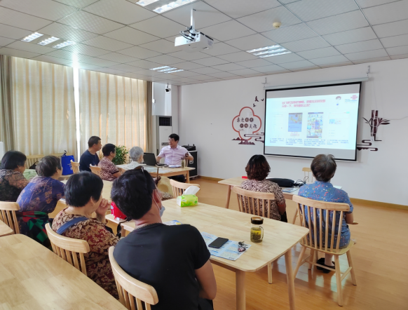 培訓(xùn)以PPT形式進(jìn)行,吳貞金老師將具體操作步驟通過圖文結(jié)合的方式展示給居民,同時在旁進(jìn)行現(xiàn)場演示與指導(dǎo),耐心地告知居民每一步該如何操作。為了鞏固學(xué)習(xí)成果,帶領(lǐng)老年居民實地操作,以便能夠加深印象,牢固掌握,當(dāng)居民遇到問題時,現(xiàn)場志愿者也會走到老人身邊幫助解答。居民們認(rèn)真聆聽、練習(xí),培訓(xùn)現(xiàn)場學(xué)習(xí)氛圍濃厚。