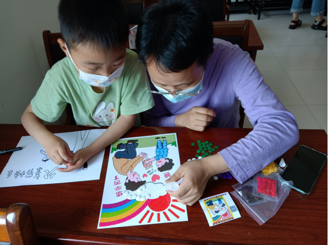 接著是做紐扣畫(huà),用一個(gè)個(gè)五彩繽紛的紐扣組成獨(dú)特的繪畫(huà),表達(dá)了他們對(duì)父親深深的愛(ài),還培養(yǎng)孩子們動(dòng)手能力,從小學(xué)會(huì)感恩。最后他們還為父親制作了節(jié)日祝福的賀卡,祝福父親開(kāi)心幸福,永遠(yuǎn)年輕。