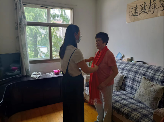 大家齊唱生日快樂歌,為郭奶奶佩戴紅圍巾,聽著聲聲祝福的話語,郭奶奶樂得合不攏嘴。志愿者還為老人測量血壓,工作人員幫助其打掃家中衛(wèi)生?,F(xiàn)場,郭奶奶也向我們分享著屬于他的幸福與快樂:“我的一生的幸福都是共產(chǎn)黨和國家給我的,給了我一個好時代,讓我可以擁有如此快樂的晚年生活。”