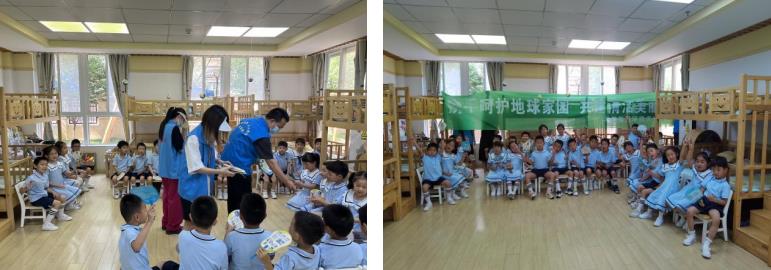 活動(dòng)中,工作人員給小朋友們分發(fā)了印有環(huán)境保護(hù)圖文的扇子,向他們普及了“世界環(huán)境日”的創(chuàng)立與意義,為他們講解環(huán)境保護(hù)知識(shí)。隨后,工作人員還以繪本為載體,舉行了垃圾分類小課堂,繪本材料內(nèi)含垃圾分類標(biāo)識(shí)、說明、垃圾分類圖片、不同垃圾類別的處理方式、垃圾分類測(cè)試等,引導(dǎo)幼兒在家中、幼兒園養(yǎng)成垃圾分類的好習(xí)慣,孩子們都積極參與互動(dòng),熱情高漲。