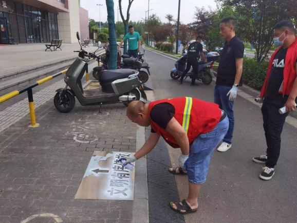 社區(qū)志愿者對(duì)石埠灣菜場(chǎng)周邊非機(jī)動(dòng)車(chē)位上噴涂宣傳標(biāo)語(yǔ),志愿者手拿噴漆工具,彎腰將沿路停車(chē)位進(jìn)行了噴涂。嶄新的標(biāo)語(yǔ)格外顯眼,意在指引居民文明有序、規(guī)范停車(chē),寄托著文明的內(nèi)涵和對(duì)居民的期盼。