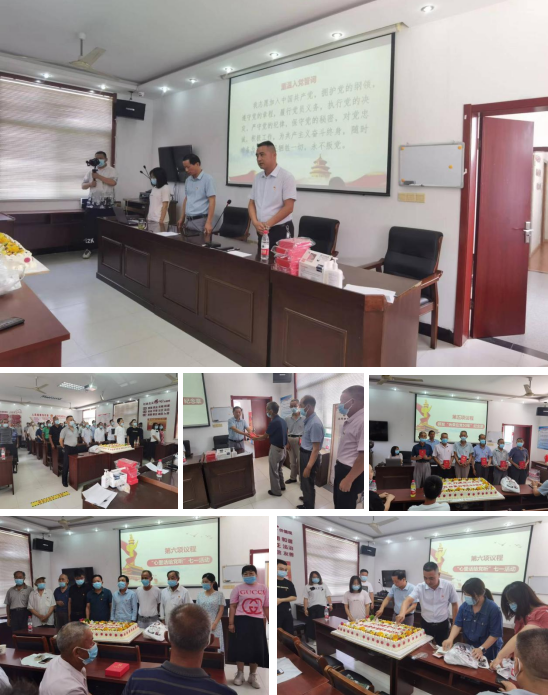 會議還引領(lǐng)黨員們重溫入黨誓詞,為老黨員頒發(fā)“光榮在黨50年”紀念章。在“心里話給黨聽”活動環(huán)節(jié)中,為生日在6、7月份的黨員過集體生日,切分蛋糕,與黨共慶生,并邀請每個黨員都對黨說句心里話。