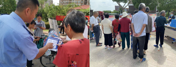 活動現(xiàn)場通過擺放禁毒宣傳展板、懸掛禁毒宣傳橫幅、發(fā)放單頁、扇子等禁毒宣傳資料的形式,向來往群眾宣傳防毒、拒毒的基本常識,講解毒品對個人、家庭、社會的危害。
