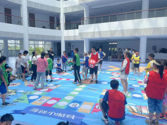 除了參觀學(xué)習(xí),夏令營(yíng)還為孩子們安排了與海事相關(guān)的游戲環(huán)節(jié),大家紛紛化身小船員,站在飛行棋的墊子上、手拿骰子,分組玩游戲。游戲場(chǎng)上一片歡聲笑語(yǔ),大家沉浸在游戲的快樂(lè)之中,在活動(dòng)中認(rèn)識(shí)了彼此,拉近了距離。