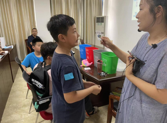 為提高孩子們環(huán)境保護(hù)的思想意識(shí),培養(yǎng)垃圾分類的生活習(xí)慣,志愿者還開(kāi)展了垃圾分類的知識(shí)課堂,教導(dǎo)孩子們養(yǎng)成分類習(xí)慣,了解分類知識(shí)。志愿者手拿知識(shí)卡片,告訴孩子們各類型垃圾的正確投放方法。孩子們都表示在今后用行動(dòng)踐行垃圾分類,保護(hù)家園環(huán)境。