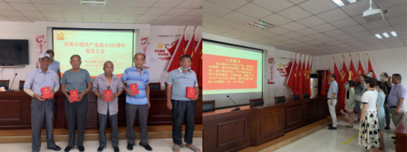 講座上,俞有利教授通過大量的歷史史實和一個個鮮活的事例為大家詮釋中國共產(chǎn)黨的精神之源。黨員們圍坐在一起,一邊聽著黨課一邊結(jié)合自己的工作實際,彼此相互交流感受和看法。現(xiàn)場還邀請了老黨員們與大家話初心,并為他們頒發(fā)“光榮在黨50年”紀念章,感謝老黨員們多年來為祖國、為人民做出的突出貢獻。此外,全體黨員還面向黨旗,紛紛舉起右拳,重溫入黨誓詞。宣誓中,每個黨員對照誓詞標準、尋找自身差距,進一步堅定了理想信念。