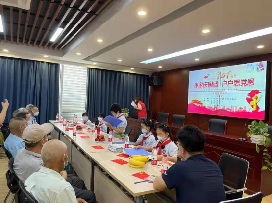 一張空白賀卡,畫上黨徽、黨旗、天安門、和平鴿等元素,佐以顏色,再寫下對黨的祝福,平面的、立體的、異形的……一張張獨一無二的精美創(chuàng)意賀卡便在少先隊員們的手中制作完成了。他們身穿校服、系紅領(lǐng)巾,將賀卡親手送給在場的每一位黨員,以少先隊隊禮敬之,向他們致以崇高的敬意。