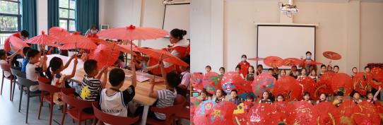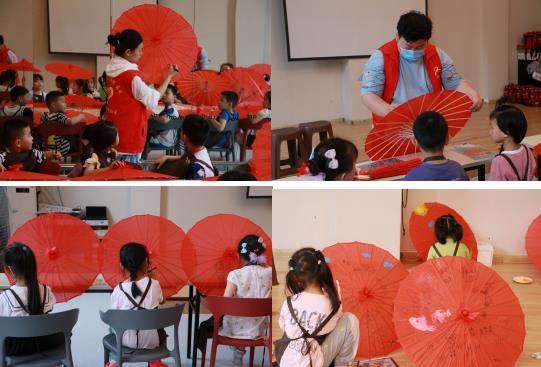 活動一開始,社區(qū)新時代文明實踐志愿者們便向在座的孩子們發(fā)放今天要用到的紅色紙傘以及畫筆,告訴大家需要繪畫的內(nèi)容。志愿者們先做示范,在紙傘上畫出海洋動物以及陸地動物的大致輪廓,讓有繪畫基礎的孩子們親自動手,并在一旁幫助指導。章魚、企鵝、熊貓、海草……在小朋友們的奇思妙想中,一個個栩栩如生的動物圖案躍然紙上,孩子們拿著顏料為自己的作品涂色,還相互之間交流討論,現(xiàn)場熱鬧非凡。完成后,志愿者們在紙傘上貼上五角星,引導孩子們樹立愛黨愛國的意識,努力成為一個新時代好少年。
