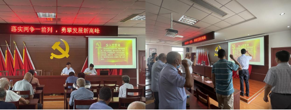 上午,錢家村黨員大會(huì)準(zhǔn)時(shí)召開。會(huì)上,黨總支書記尹家志圍繞“兩爭(zhēng)一前列”進(jìn)行黨課宣講,要求黨員以更高標(biāo)準(zhǔn)、更嚴(yán)要求勇于擔(dān)當(dāng),努力做無愧于新時(shí)代的合格共產(chǎn)黨員。隨后,尹書記帶領(lǐng)全體黨員重溫入黨誓詞。宣誓活動(dòng)中,黨員們列隊(duì)整齊,面向黨旗,高舉右拳,用鏗鏘有力的聲音,莊嚴(yán)宣誓:“我志愿加入中國共產(chǎn)黨,擁護(hù)黨的綱領(lǐng),遵守黨的章程……隨時(shí)準(zhǔn)備為黨和人民犧牲一切,永不叛黨。”