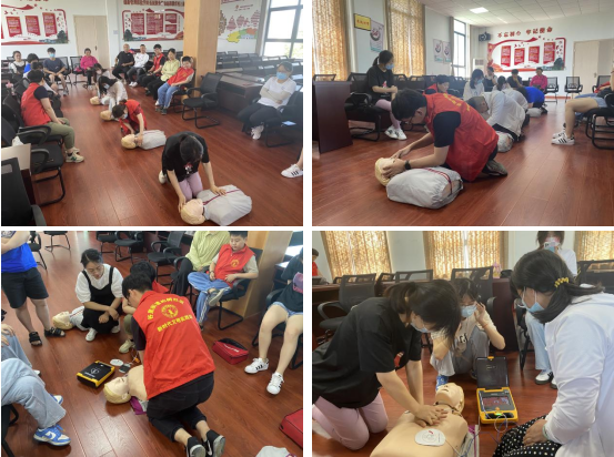 實(shí)踐是檢驗(yàn)真理的唯一標(biāo)準(zhǔn)。培訓(xùn)現(xiàn)場(chǎng)擺放了“復(fù)蘇安妮”和AED,通過對(duì)“安妮”模擬實(shí)施應(yīng)急救護(hù),老師耐心地教導(dǎo)大家如何找準(zhǔn)心臟位置、按壓幅度和頻次、口腔異物處理以及AED的正確使用。在模擬過程中,大家積極討論交流,向老師提問,力求做得更好,現(xiàn)場(chǎng)互動(dòng)感十足。