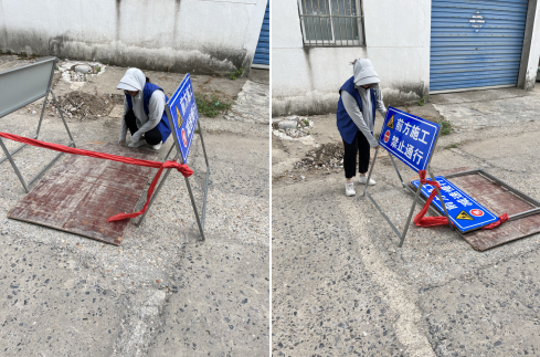 發(fā)現(xiàn)狀況后,張如玥立即聯(lián)系施工隊(duì),購置新的井蓋。為避免路過的居民沒有注意導(dǎo)致受傷,張如玥找了一塊木板,將破洞覆蓋住,同時(shí)在旁邊放置“前方施工,禁止通行”的提醒指示牌,用紅線攔住,也防止孩子、動(dòng)物亂跑發(fā)生危險(xiǎn)。購置好新的井蓋后,張如玥跟進(jìn)井蓋更換完畢,確保消除了此處安全隱患后,將障礙物再次移除。旁觀了這件事情的居民張先生說:“我們的網(wǎng)格員真的很負(fù)責(zé)、很細(xì)心,時(shí)刻把大家的安全放在第一位。”