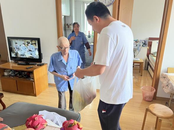 夏季天氣燥熱,殘協(xié)志愿者還為空巢殘疾老人們送來水果,并為老人們做起力所能及的家務(wù),幫助他們做打掃房間、修換燈泡等日常瑣事。老人們對殘協(xié)志愿者的貼心服務(wù)表示感謝,對著志愿者豎起大拇指。