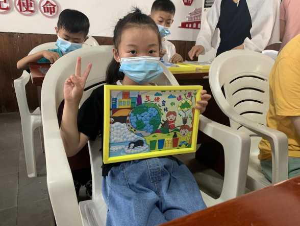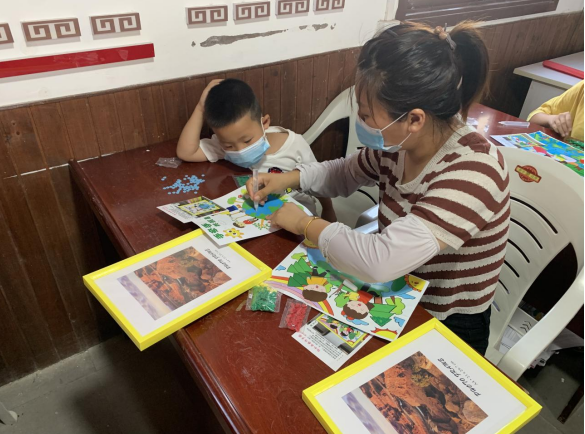隨后,志愿者帶領(lǐng)眾人共同制作文明行為鈕扣畫,聽完志愿者的講解后,大家迫不及待的動(dòng)手制作起來,小心翼翼的將一顆顆紐扣黏到了畫中,很快一幅幅作品在孩子們的手中誕生。一顆顆紐扣變成了一副副生動(dòng)畫卷,孩子們用栩栩如生的紐扣畫,表達(dá)了對文明行為的支持,做出了自己的承諾??粗约河H手精心制作的畫作,孩子們的臉上露出了開心的笑容。