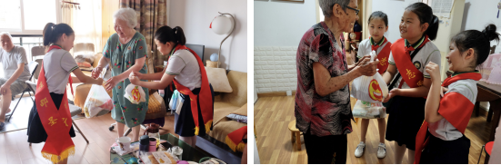 來到獨居空巢老人的家中,小志愿者們將慰問品送到他們的手上,轉達了社區(qū)對他們的牽掛和關懷,祝福他們身體健康,用童言童語慰藉他們的心靈。