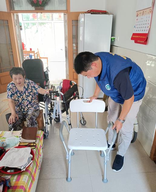 網(wǎng)格員將嶄新的洗浴椅送到殘疾人家中,并為其進(jìn)行現(xiàn)場安裝調(diào)節(jié),有了洗浴椅,村民就可以自行解決洗澡難的問題,給他們的日常生活帶來便利。殘疾村民感動地向網(wǎng)格員連聲道謝,并說道:“我下肢不便,不能長時間站立,現(xiàn)在有了這個椅子我終于可以舒服地洗個澡了,謝謝你們。”
