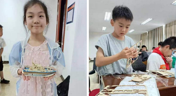 小朋友來(lái)到學(xué)校模型室,孩子們熱情高漲,臉貼著展覽玻璃,觀看各類船舶模型,不時(shí)地和周圍同學(xué)討論著,直到他們自己制作小船模型。孩子們按照?qǐng)D紙做好組合、拼接、整合成型、美化等每一個(gè)細(xì)節(jié),一艘艘小船就這樣在小手里誕生了,承載孩子們的夏日夢(mèng)想去遠(yuǎn)航。