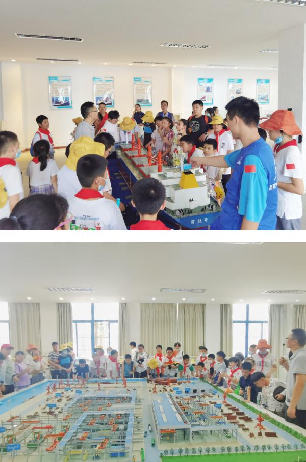 下午,孩子們?cè)谥驹刚叩膸ьI(lǐng)下,首先來(lái)到了船舶學(xué)院參觀了各種大型輪船與潛艇的模型,透過一件件模型、圖片以及新穎的電子互動(dòng)裝置,增加了孩子們對(duì)海洋知識(shí)的探索。