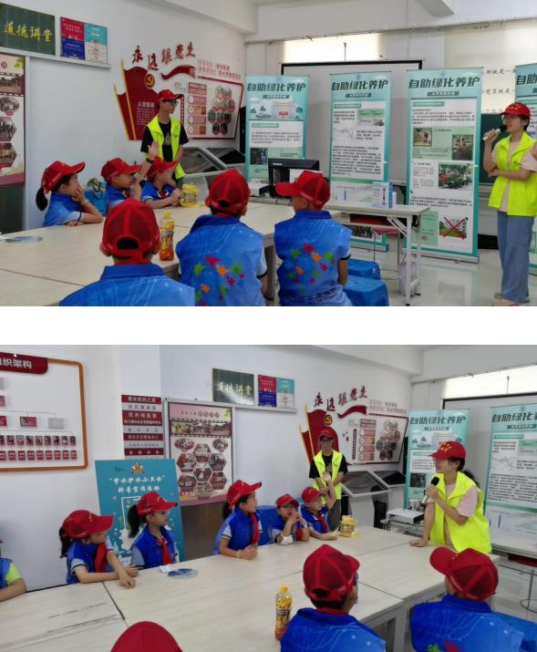 在社區(qū)活動(dòng)中心,協(xié)會(huì)志愿者向隊(duì)員們介紹了水相關(guān)的基礎(chǔ)知識(shí)、“雙碳”目標(biāo)以及自助綠化養(yǎng)護(hù)方法,隊(duì)員們認(rèn)真聽講,并了解到一些力所能及的保護(hù)水資源的方法,在問答環(huán)節(jié)中躍躍欲試。