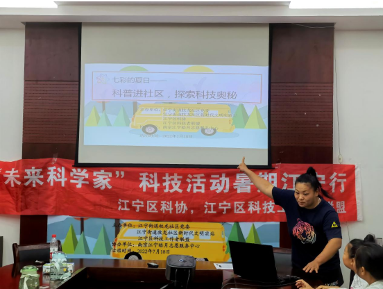 為激發(fā)社區(qū)青少年對科學(xué)的學(xué)習(xí)興趣,2022年7月18日,南京市江寧區(qū)江寧街道牧龍社區(qū)婦聯(lián)、衛(wèi)計(jì)、關(guān)工委聯(lián)合江寧區(qū)科協(xié)、江寧區(qū)科技工作者聯(lián)盟,在社區(qū)家長學(xué)校開展“七彩的夏日”主題活動(dòng)。