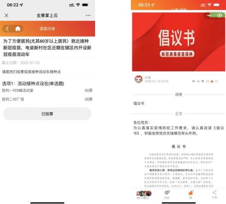 為了方便老年人就近接種疫苗,電瓷新村社區(qū)通過“掌上云社區(qū)”進(jìn)行民意調(diào)查,根據(jù)投票選擇流動疫苗接種的位置,并借助“掌上云社區(qū)”發(fā)出新冠疫苗接種倡議書,通過線上宣傳發(fā)動、線下居民積極配合,有效地提高了新冠疫苗接種率。