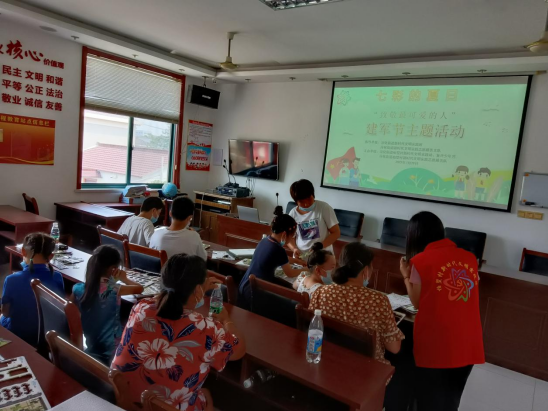 活動現(xiàn)場,新時代文明實踐志愿者向小朋友們介紹了建軍節(jié)主題活動的目的及意義,并通過播放《那年那兔那些事》愛國主義題材動漫,讓青少年在戲說風趣中加深對中國人民解放軍歷史的了解。
