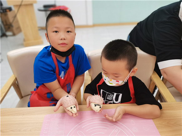 當(dāng)老師拿出準(zhǔn)備好的面團(tuán)的一剎那,孩子們歡呼雀躍,迫不及待的跟著老師學(xué)做起來(lái),制作過(guò)程每個(gè)孩子都專注打造自己手中的面團(tuán),從如何揉面,如何打造造型,如何用剪刀打造刺猬一身的刺,孩子們都在精心的雕琢著!不一會(huì)一個(gè)個(gè)生動(dòng)活潑的小刺猬呈現(xiàn)出來(lái)。在蒸制的同時(shí),老師又給大家分發(fā)面團(tuán)進(jìn)入diy環(huán)節(jié),孩子們?cè)诶蠋煹闹笇?dǎo)下腦洞打開(kāi),各種小動(dòng)物,魔術(shù)帽、花朵、甜甜圈,外星人等各種造型,不得不讓老師稱贊孩子們的創(chuàng)意。