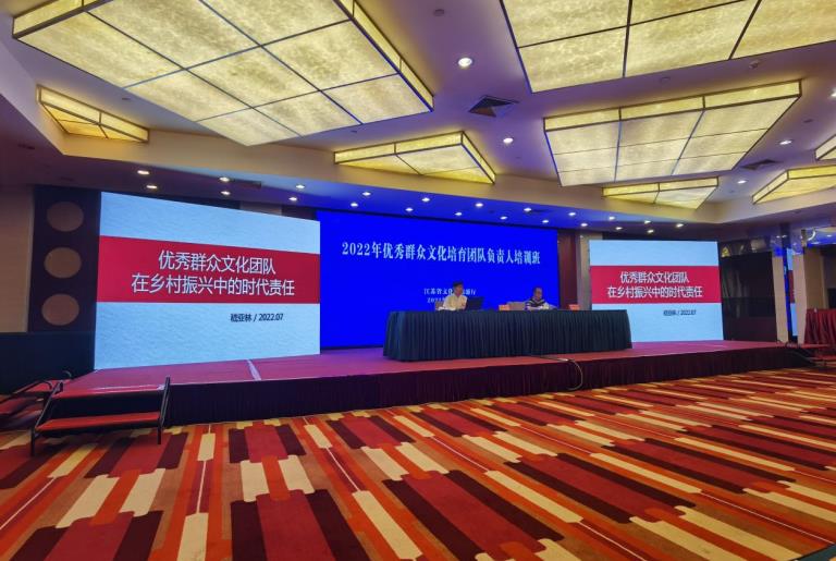 2022年7月29日至30日,江蘇省文化和旅游廳在南京“江蘇省會(huì)議中心”對(duì)全省205個(gè)優(yōu)秀文化團(tuán)隊(duì)負(fù)責(zé)人舉行為期兩天的業(yè)務(wù)培訓(xùn)。牛首七星藝術(shù)團(tuán)就是這次優(yōu)秀群眾文化培育對(duì)象,也是全江寧區(qū)唯一一家。