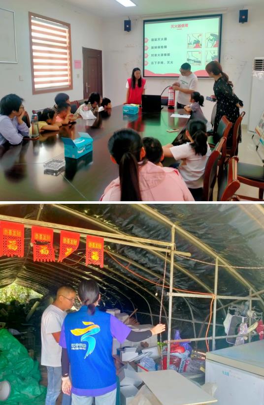 專職安全員和網(wǎng)格員對工貿(mào)企業(yè)開展消防檢查,重點檢查滅火器是否過期,安全通道是否阻塞等隱患,責令單位按時整改。對大棚戶進行檢查,重點檢查電器線路,煤氣使用等,督促更換電線,增加滅火器。對小商超進行檢查,重點檢查是否存放煙花爆竹、易燃易爆物品等,督促商戶做好高溫預防。對獨居老人房屋進行檢查,重點檢查用電用氣安全,對老舊線路進行更換。