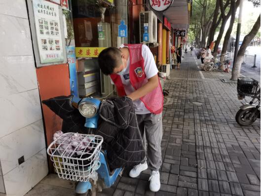在早高峰期間,社區(qū)志愿者、工作人員穿著紅馬甲站在街頭、輕軌站下,將一些停放不規(guī)范的非機(jī)動車搬至停放劃線區(qū)域,引導(dǎo)上班的市民有序規(guī)范停車。烈日當(dāng)頭,雖已汗滴如雨,但社區(qū)的工作人員和志愿者們依然堅守在崗位上,做好規(guī)范和引導(dǎo)的工作。