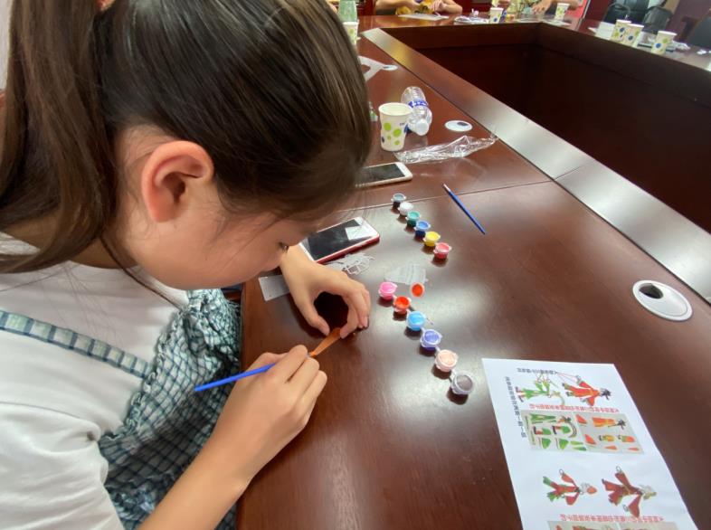 在巾幗志愿者、計生協會和社區(qū)志愿者的悉心講解及幫助下,小朋友們掌握了皮影戲的制作技巧,按照樣圖開始調色、上色不亦樂乎。制作完畢,操作著不同的角色,在投影下配合演繹出一部三打白骨精的大作,每個人的臉上都洋溢著歡樂的笑容。