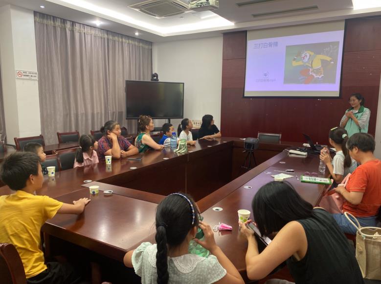 觀看“三打白骨精”動畫片,感受孫悟空火眼金睛之厲害,臺下小朋友們看的是目不轉睛,體驗了什么是詐騙如戲,全靠演技。反詐與動畫聯動,趣味十足。