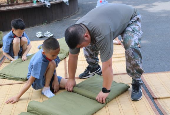 活動(dòng)特別邀請(qǐng)了牌坊村民兵訓(xùn)練指導(dǎo)老師,組織青少年兒童進(jìn)行軍事訓(xùn)練,包括站立軍姿,踢腿正步走,整理內(nèi)務(wù)等一系列基本軍事技能的練習(xí)。穿上軍裝的小朋友們?cè)诏B被子以及隊(duì)列訓(xùn)練的學(xué)習(xí)體驗(yàn)中認(rèn)真又堅(jiān)毅,渾身散發(fā)著不怕苦能吃苦的精神,愛國(guó)主義精神的種子也在他們的心中慢慢地生根發(fā)芽。