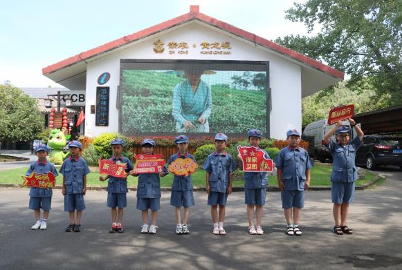 在活動(dòng)快要結(jié)束的時(shí)候,小朋友們依依不舍得和民兵一起合照留念,他們的心中也種下了一顆顆紅色的種子。