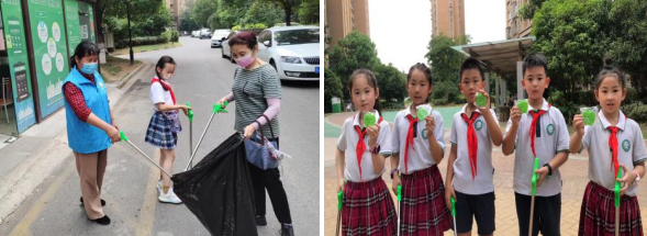 活動(dòng)伊始,社區(qū)工作者及網(wǎng)格員代表向?qū)W生和家長們介紹分享了日常工作,包括信息的采集、社區(qū)治安和環(huán)境的巡查、通知發(fā)布和對特殊人群的關(guān)懷等。學(xué)生們還觀看了廚余垃圾收集、運(yùn)送的宣傳視頻。此外,學(xué)生們還走進(jìn)小區(qū)深入體驗(yàn),他們手握垃圾夾在大道上、小區(qū)草叢中,彎著腰,仔細(xì)尋找,撿拾起零碎的不易被人發(fā)現(xiàn)的小垃圾。在垃圾集中投放點(diǎn),學(xué)生們還采訪了管理員阿姨的工作,向她表示敬意。