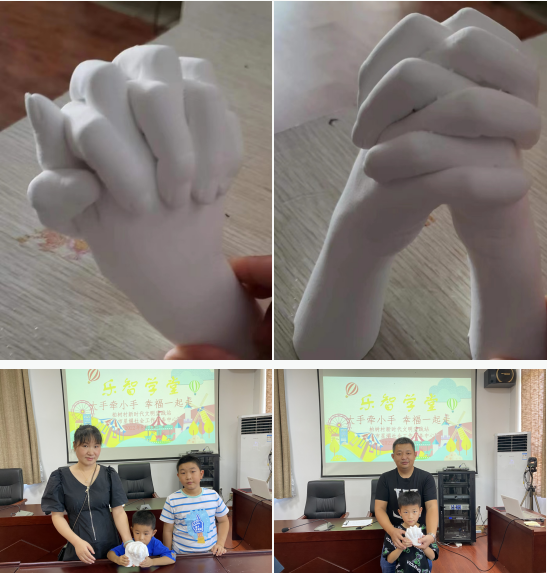 活動伊始,在新時代文明實踐志愿者的組織下,每個家庭的家長與小朋友大手牽小手,仔細觀摩彼此牽手的模樣,讓親情在彼此手中溫馨的傳遞。隨后,家長和孩子們按照對應(yīng)步驟制作手模,從制作模型腔到倒模成型,再到取模出成品,在這過程中,家長和孩子們積極溝通、通力合作,緊緊牽住彼此的手,期待幸福的定格。當手模成品展現(xiàn)在眼前時,在這永不消逝的大手牽小手中,傳遞出用心守護住的永恒,流淌的時光已被存儲為親情幸福的模樣。