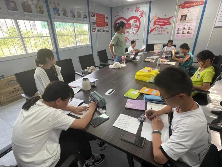 為了增強(qiáng)孩子們的課后閱讀興趣,切實(shí)減輕家長(zhǎng)負(fù)擔(dān),引導(dǎo)和幫助學(xué)生度過(guò)一個(gè)安全、快樂(lè)、充實(shí)的暑假。這個(gè)假期,三名華僑城中學(xué)老師前往南京市棲霞區(qū)棲霞街道江南廠社區(qū)進(jìn)行實(shí)踐,帶領(lǐng)社區(qū)孩子們一起學(xué)習(xí)閱讀,輔導(dǎo)孩子們假期作業(yè)。